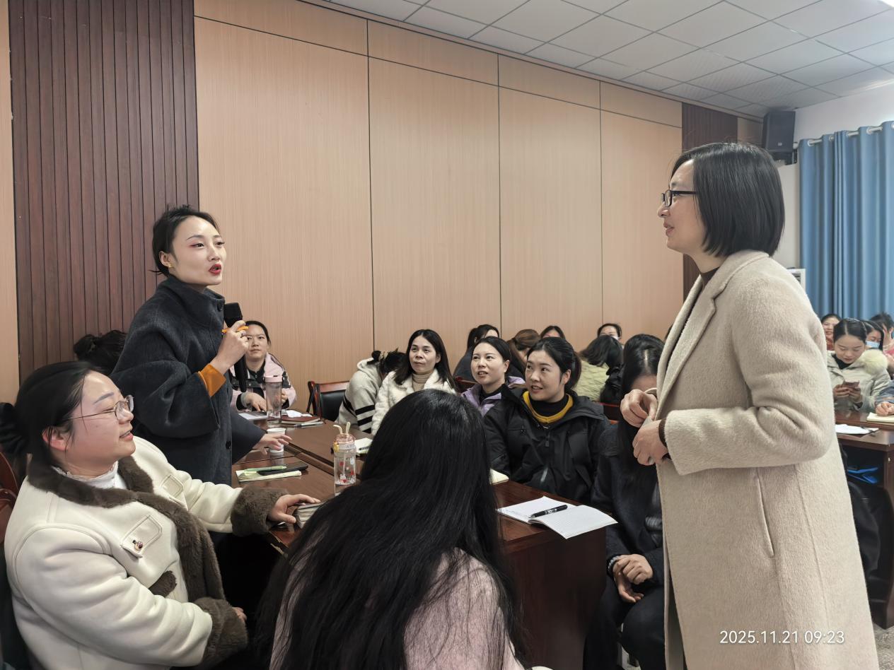 十堰市中医医院心理卫生中心副主任医师钟梅和学员讨论护理团队心理特点