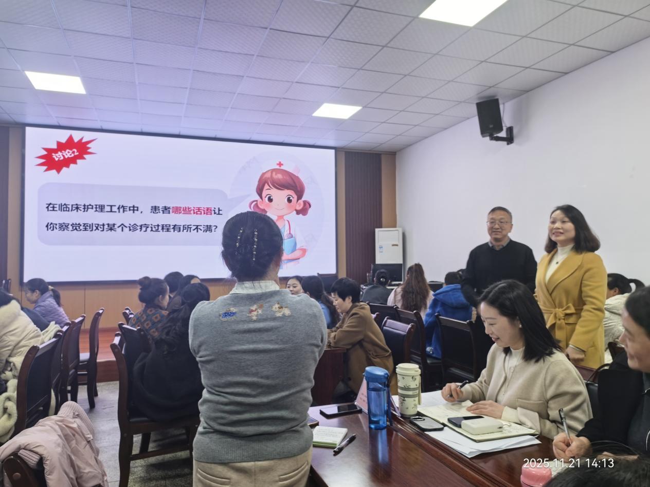 十堰市太和医院护理部主管护师杨慧与护士长们沟通医患关系