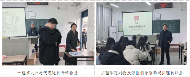 开班前,十堰市人社局和十堰市就业训练中心代表莅临现场进行开班检查,班主任随后点名并明确培训纪律要求。政策宣讲环节,老师结合养老服务行业发展趋势,向学员介绍了养老护理员职业的就业前景与创业机遇。